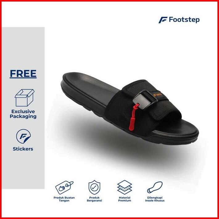 Sendal Cowok Footstep Santos Black Slide Sandal Shoes Pria Selop