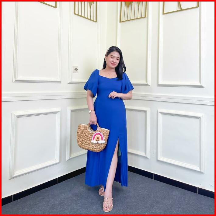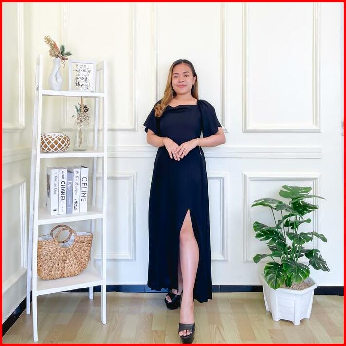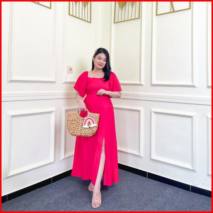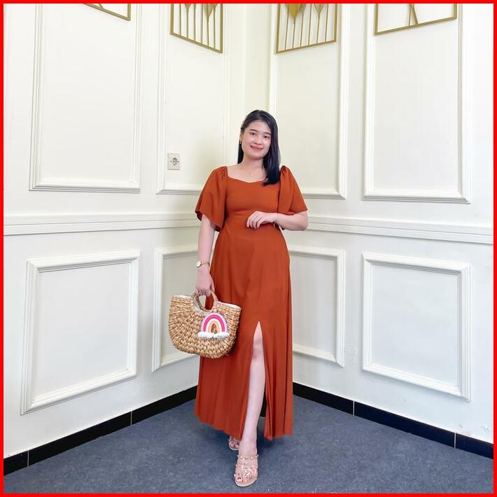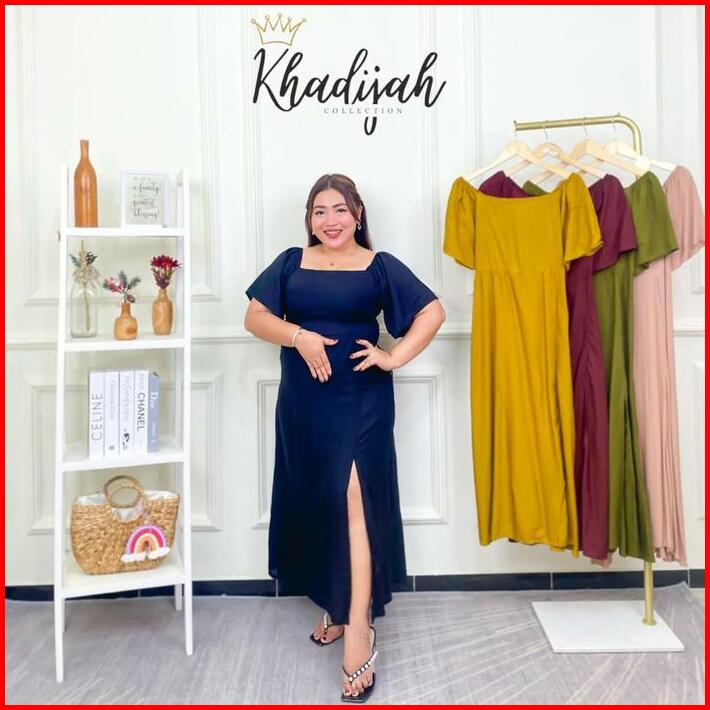 Nagita Midi Dress Kondangan Polos Katun Rayon Gaun Casual Karet Melar Nyaman