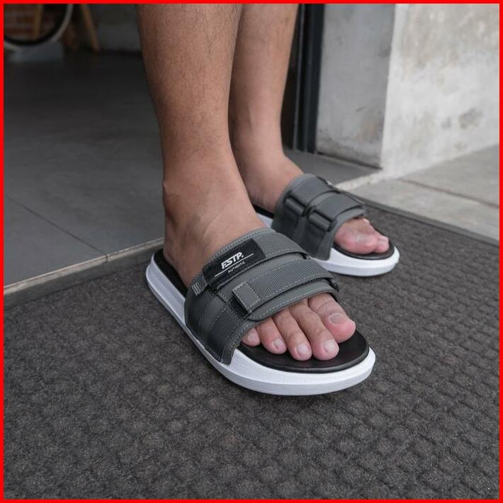 Sendal Cowok Footstep Stereo Grey White Casual Sandal Shoes Pria