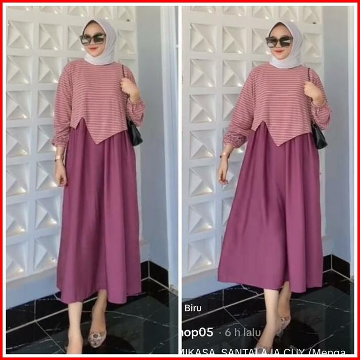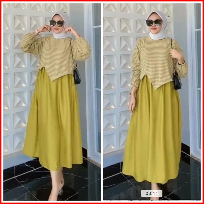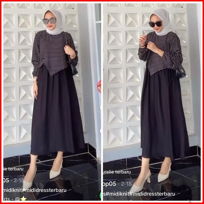 Midi Aurelie Terbaru Bahan Knit Mix Polo Linen Midi Dress