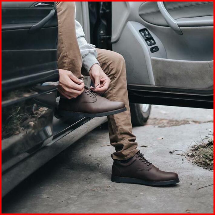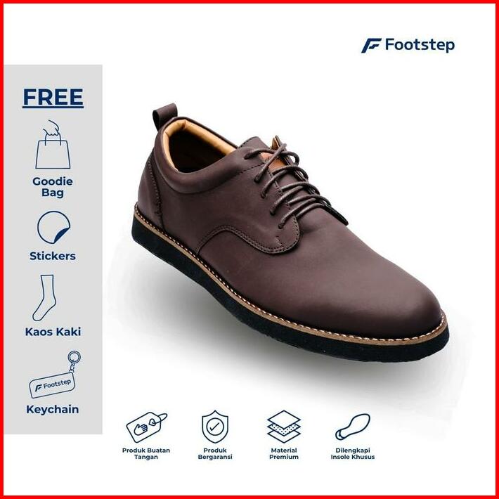 Sepatu Cowok Footstep Alaska Darkbrown Casual Shoes Pria Kerja Pantofel Hitam Black