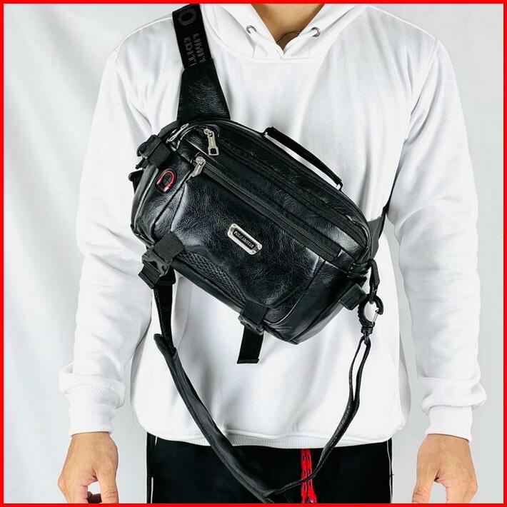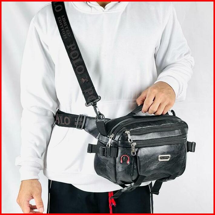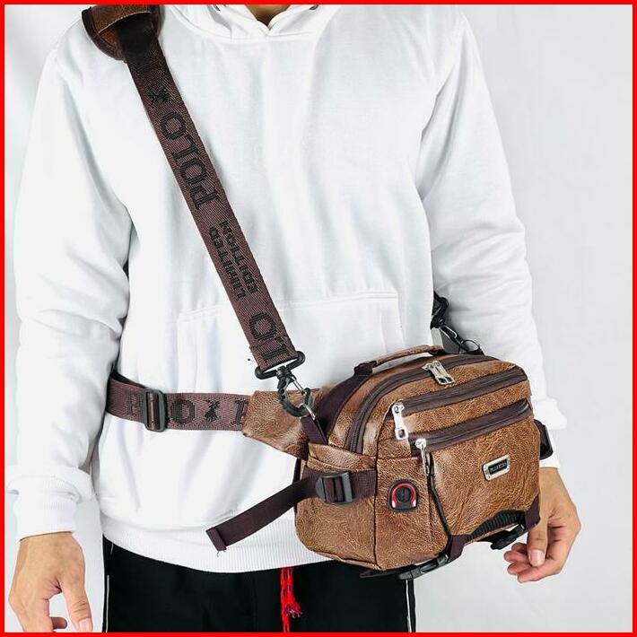 Polo Amstar Tas Selempang Pria Wanita Waistbag Tahan Air Slingbag Outdoor Multifungsi Kulit Pu Leather