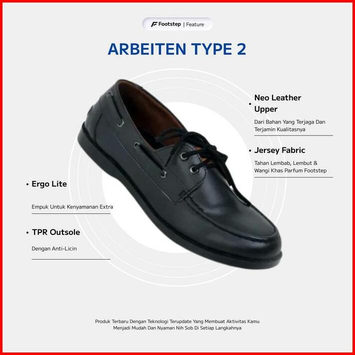 Sepatu Cowok Footstep Arbeiten 0.2 Formal Casual Shoes Pria Pantofel Kerja Hitam Fantofel