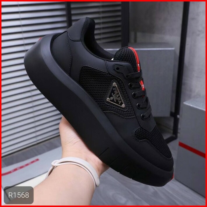 Prada All Black Sepatu Kulit Sneaker Hitam Pria Sepatu Casual Formal Footstep Footwear