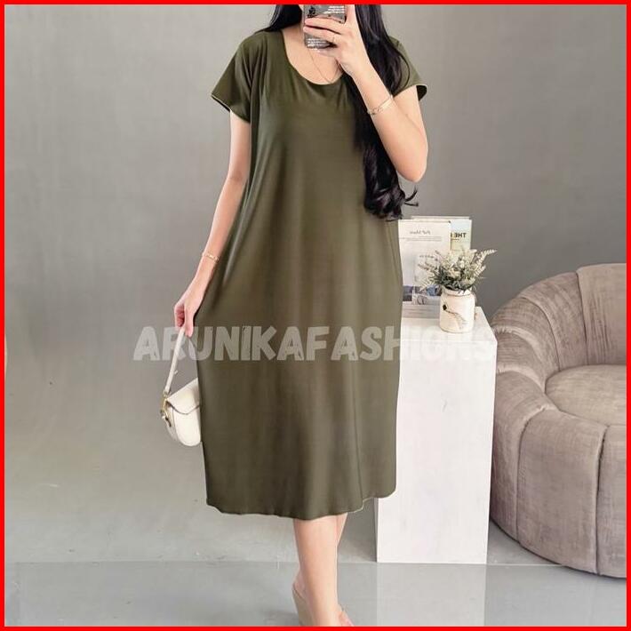 Paket Bundling 3 Daster Midi Polos Spandek Murah Adem Melar Dress Nyaman Santai Wanita