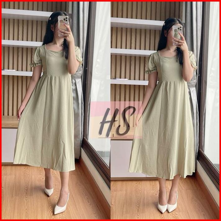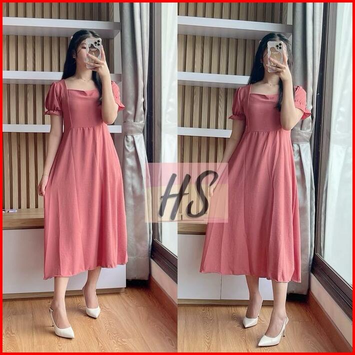 Midi Dress Sfryea Warna Baru Dress Wanita Airflow Muat Bb 45-70 Pj120cm Karet Nyaman Atasan Perempuan