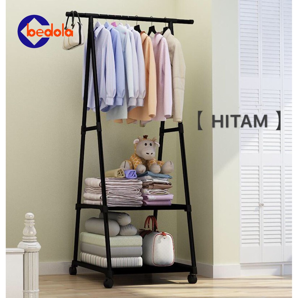 Triangle Stand Hanger Baju Rak Buku Rak Pakaian Rak Gantungan Baju Rak Susun Serbaguna Tempat Baju Dengan 4 Roda