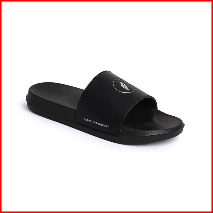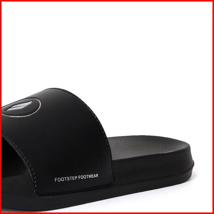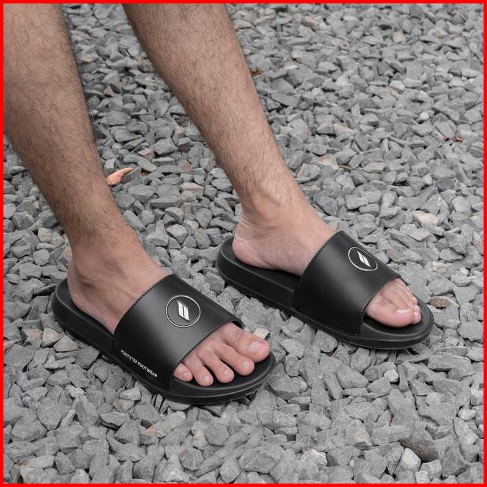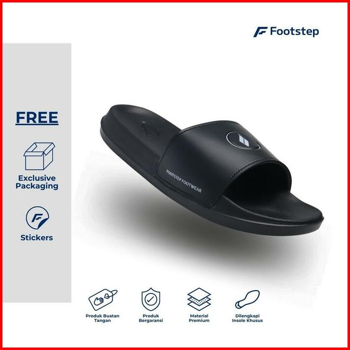 Sendal Cowok Footstep Curva White Slide Sandal Shoes Pria Selop Black
