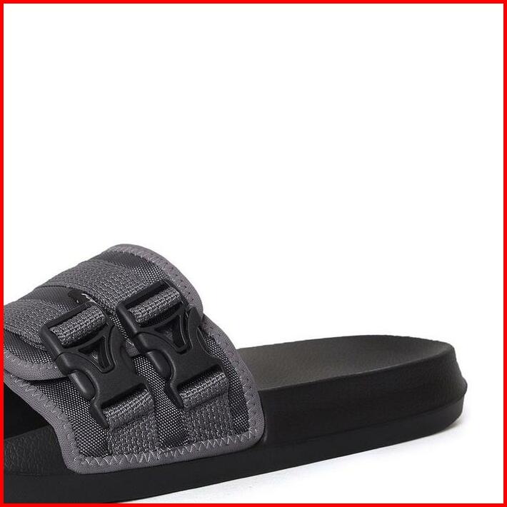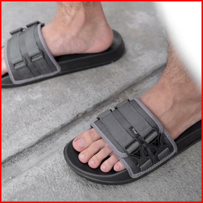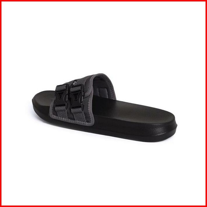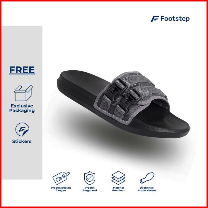 Sendal Cowok Footstep Wolv Black Grey Slide Sandal Shoes Pria
