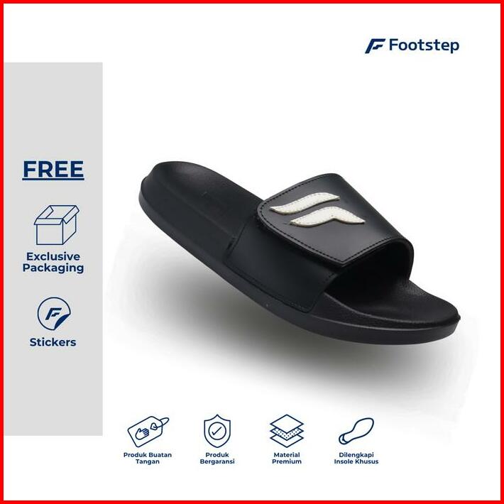 Sendal Cowok Footstep Nexa Black Slide Sandal Shoes Pria Selop