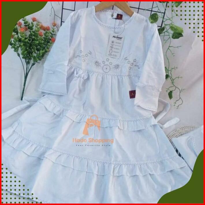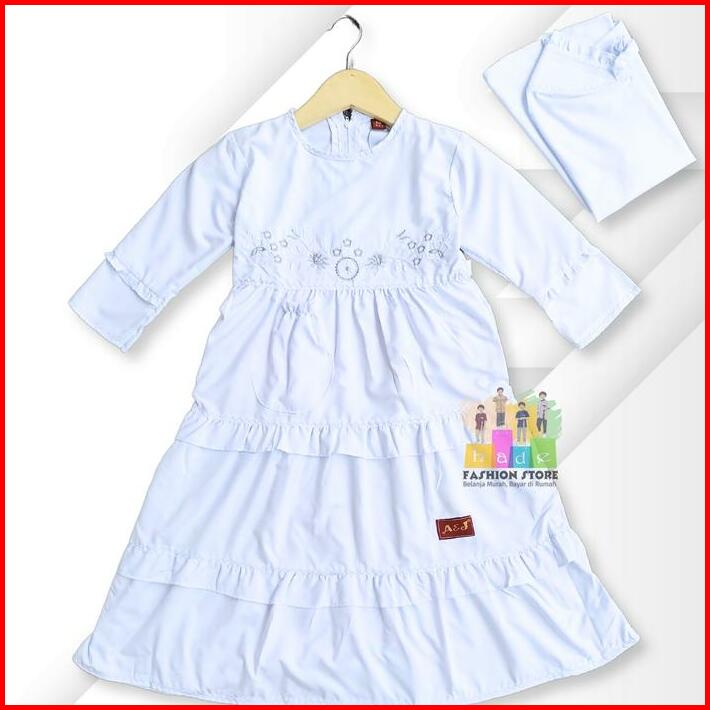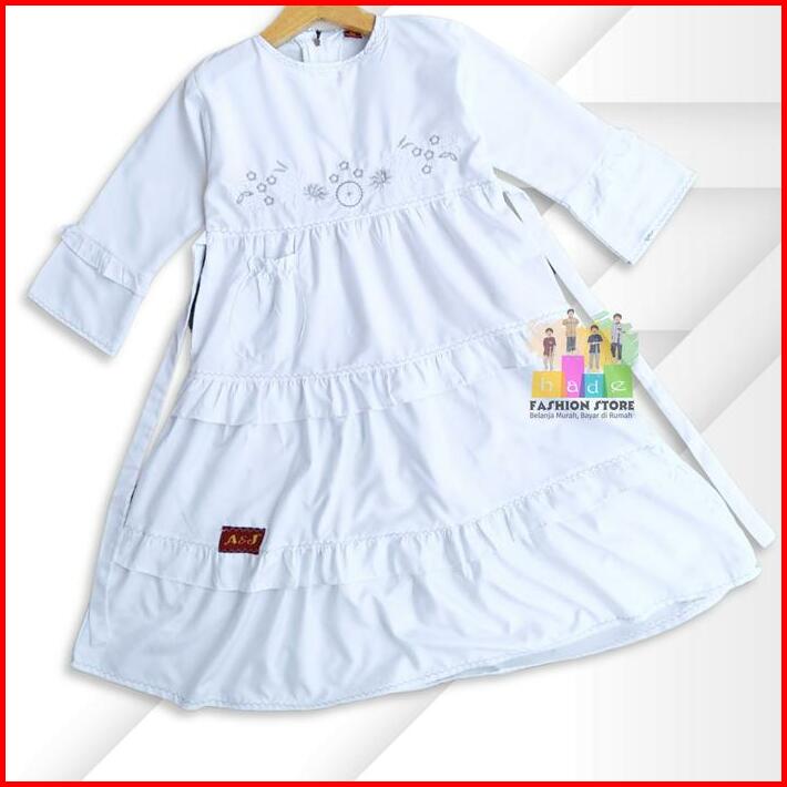 Gamis Putih Anak Katun Mikro By A J Bahan Katun Mikro Plus Jilbab Kerudung Baju Muslim Dress Syari Anak Model Renda Nyam