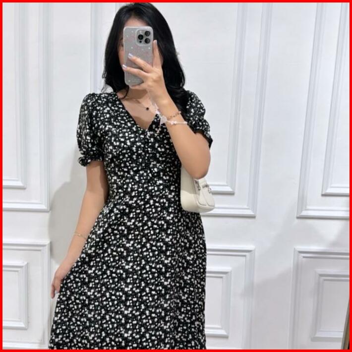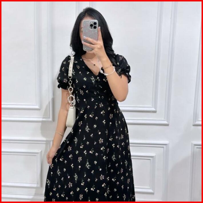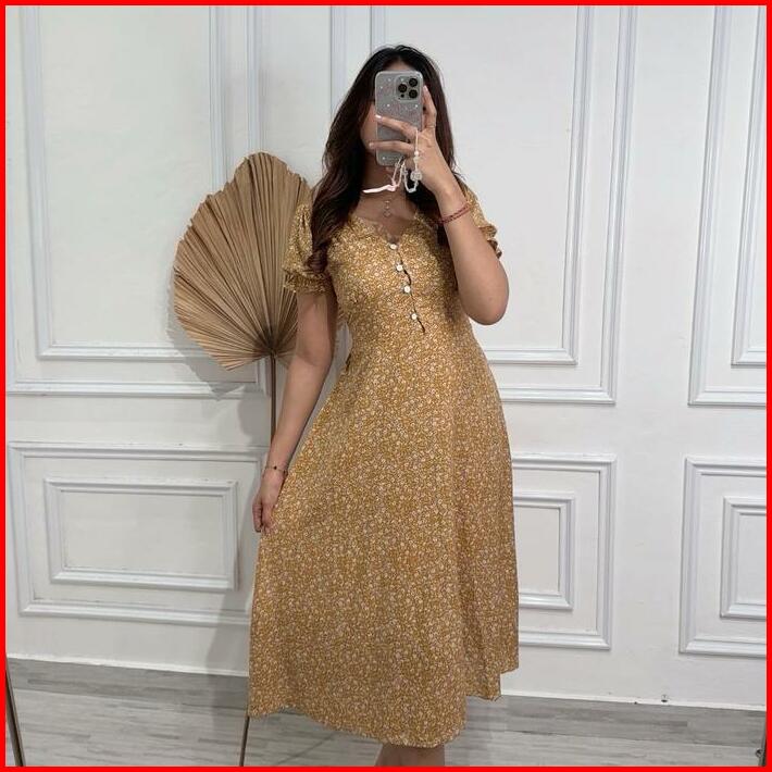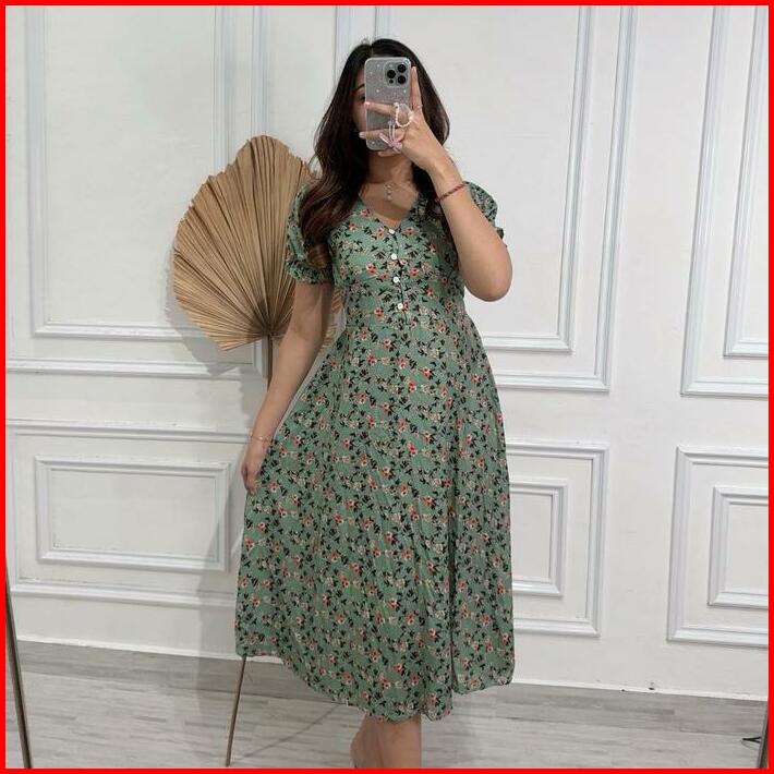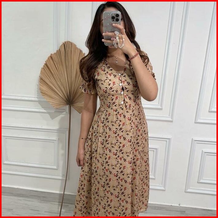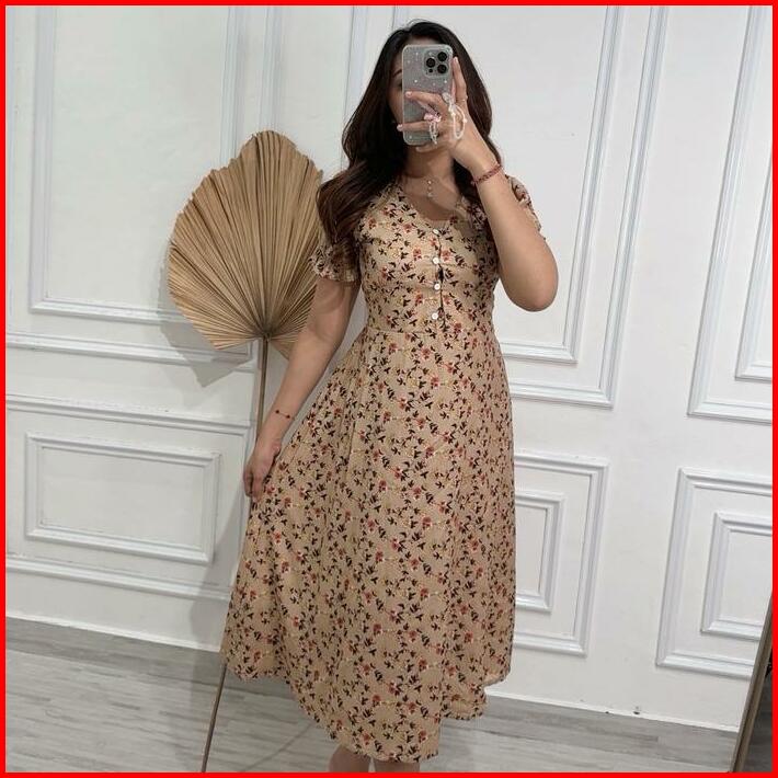 Laura Motif Midi Dress Dress Kekinian Dress Murah Dress Rayon Premium Cantik Casual