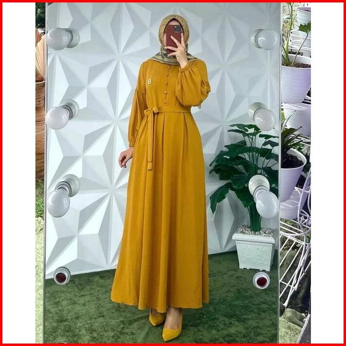 Mifa Maxi Bahan Crinkle Dress Wanita Kekinian Dress Lebaran 2023 Gamis Panjang Airflow Polos Muslim Dewasa Kondangan Pes
