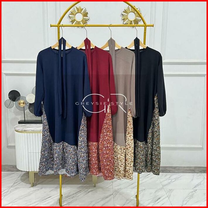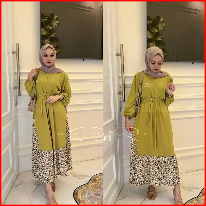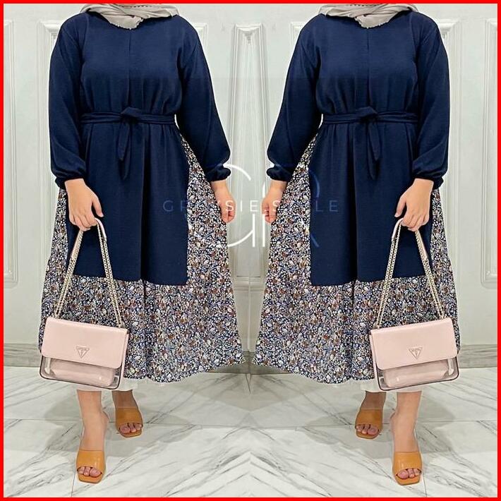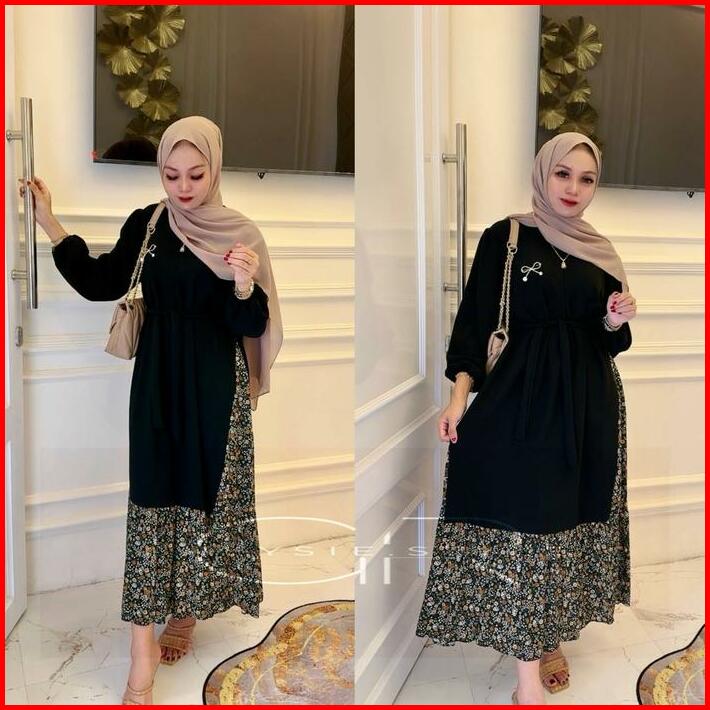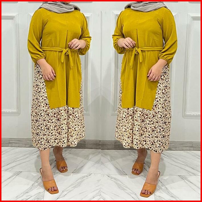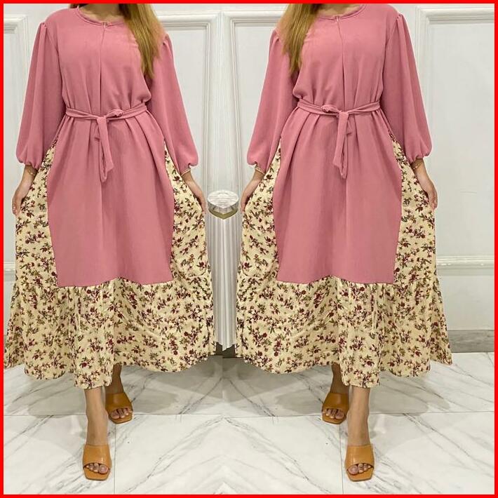 Sabira Midi Dress Crinkle Airflow Kombinasi Rayon Motif Bunga Dress Dewasa Motif Dress Perempuan Jumbo Fashion Kekinian