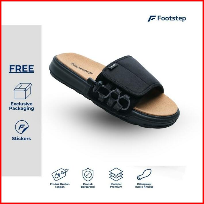 Footstep Footwear Sandal Pria Slide Salvio Grey Original Sandal Shoes Sendal Selop Black