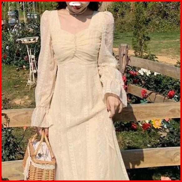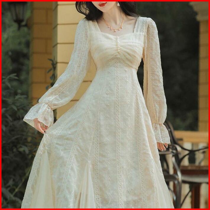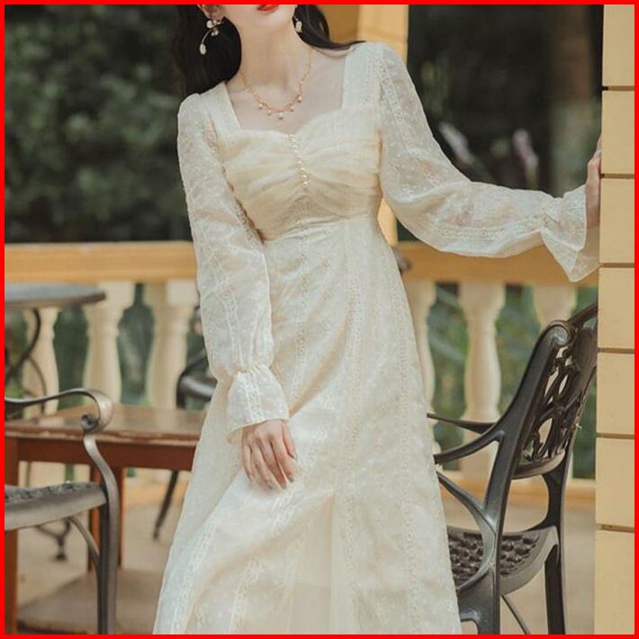 Ladyshop D289 Tea Break French Dress Fairy Skirt Korean Dress Casual Wanita Pesta Midi Retro Pantai Simple Gaun Panjang