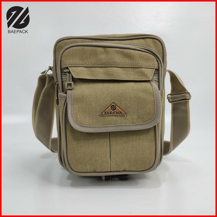 Baepack Tas Selempang Kanvas Pria Xenof Cream Original Tas Bahu Selempang Canvas Premium Aesthetik Terbaru 2023 Korean S