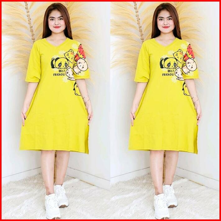Dress Casual Kerah V Ukuran Xl Belahan Samping Motif Kekinian Katun Wanita Nyaman Panjang Midi Terusan Pendek Santai Baj