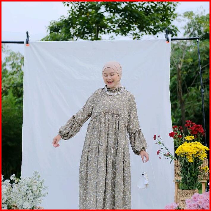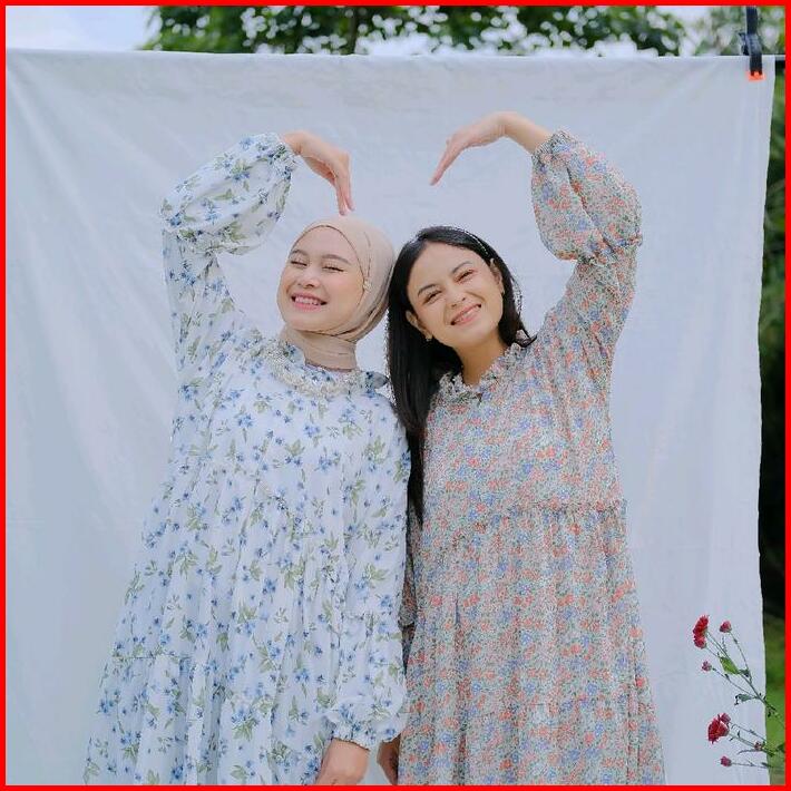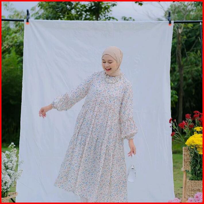 Yoona Midi Dress Midi Dress Terbaru 2023 Bordir Bunga Crepe Karet