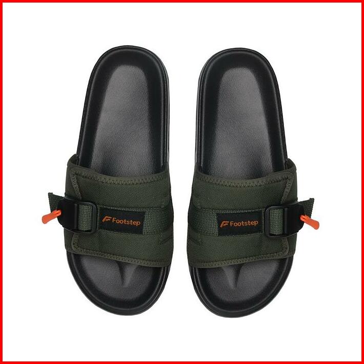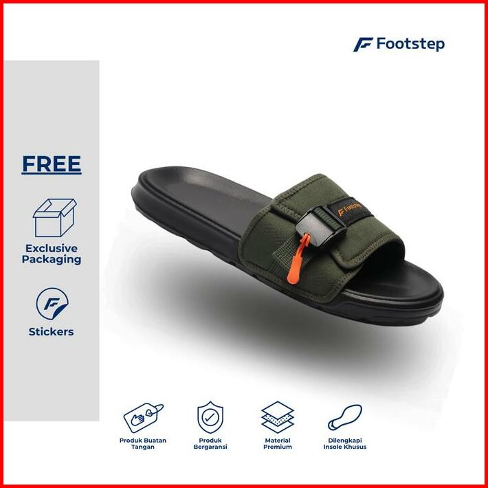 Sendal Cowok Footstep Santos Green Army Slide Sandal Shoes Pria Selop Black