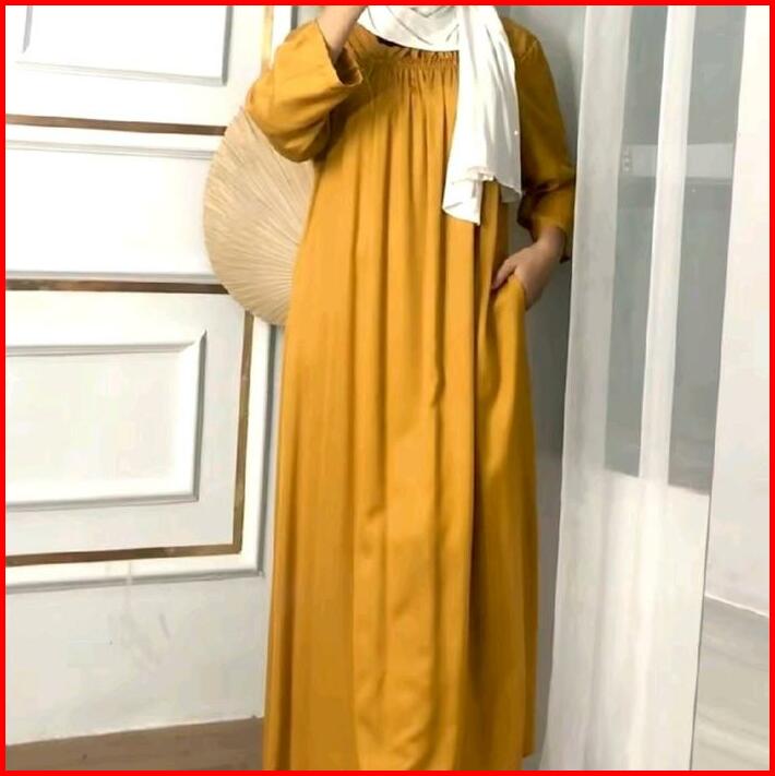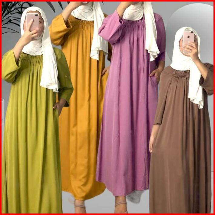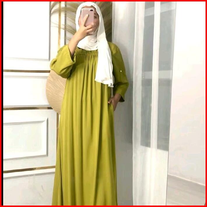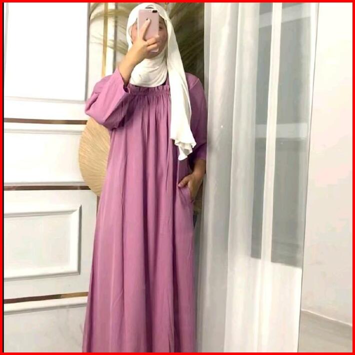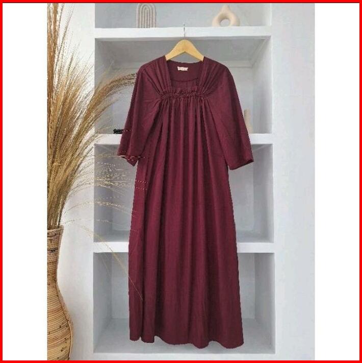 Daster Paula Polos Rayon Twill Tebal Panjang Bumil Wanita Dress Busui Midi Tidur