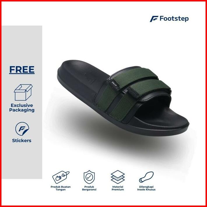 Sendal Cowok Footstep Mono Army Slide Sandal Shoes Pria Selop Black