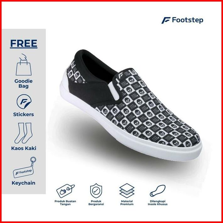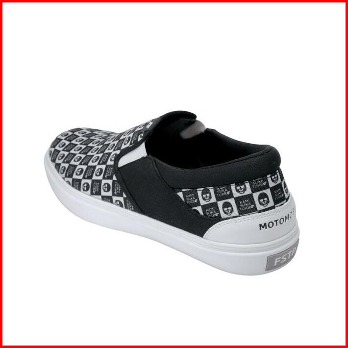 Footstep Footwear Exclusive Sepatu Pria Sneakers Motomobi Fomo Black White Original Shoes Canvas Kasual Flat