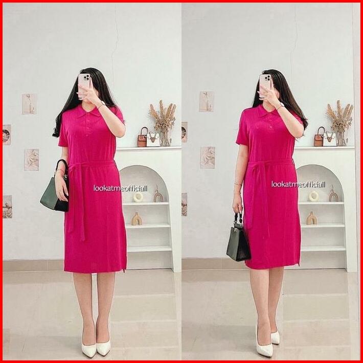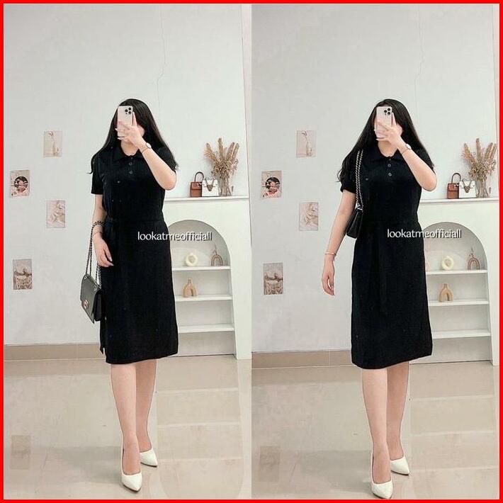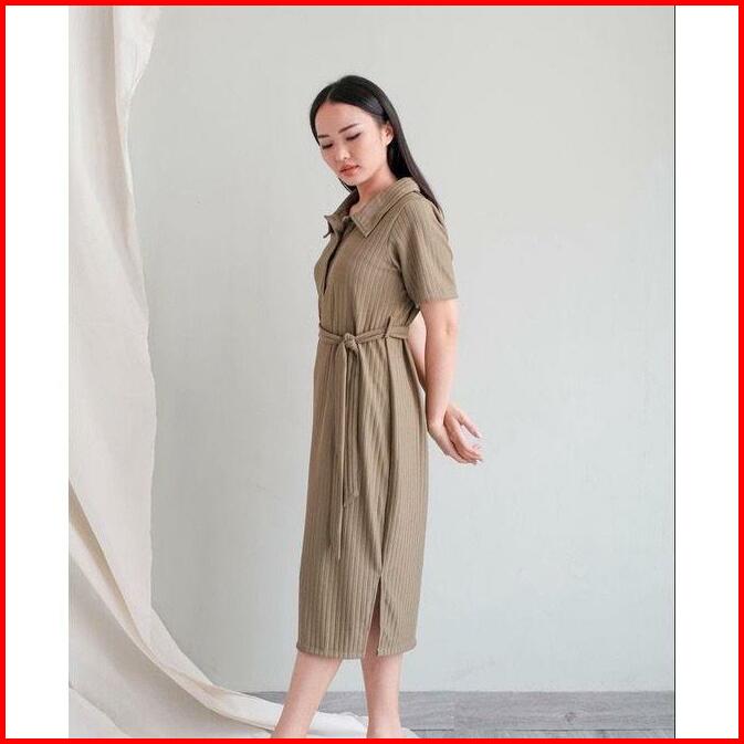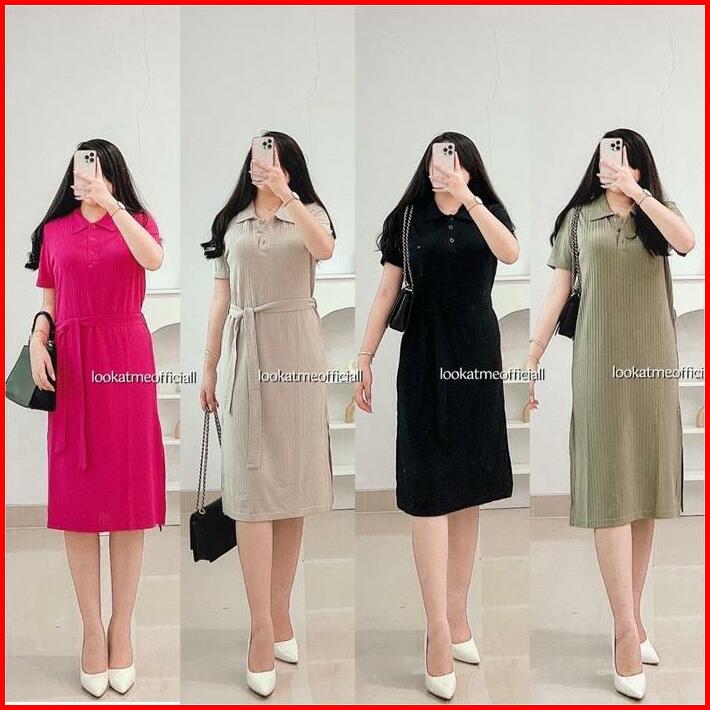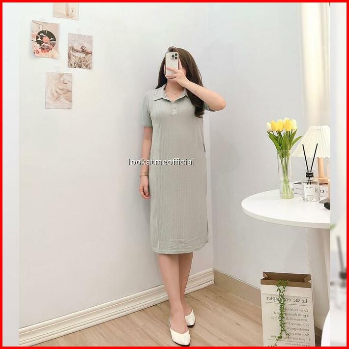 Lookatmeofficial Pau Loose Knit Premium Midi Dress Casual Kancing Simple Stretch Panjang Wanita