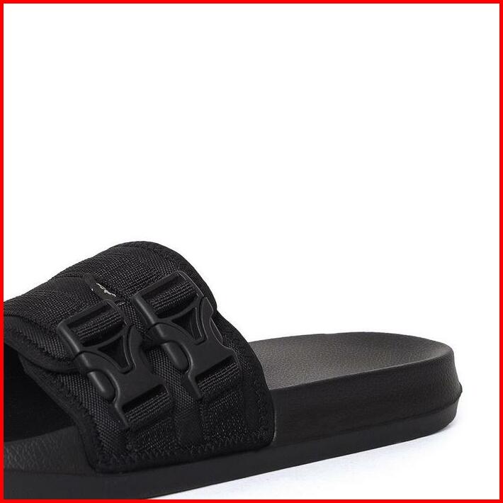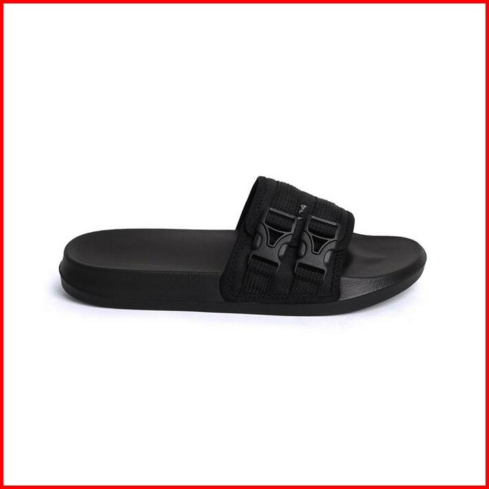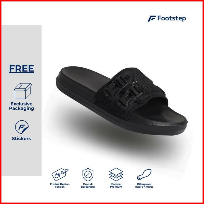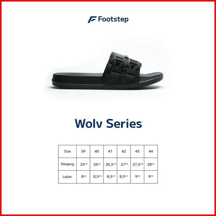 Sendal Cowok Footstep Wolv Full Black Slide Sandal Shoes Pria Selop Karet