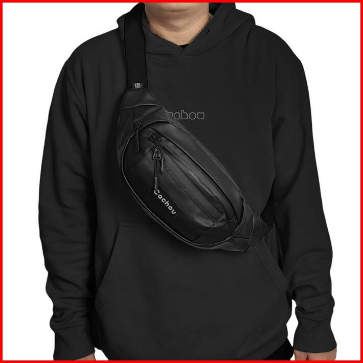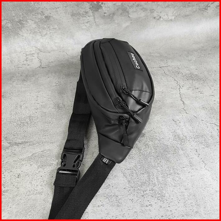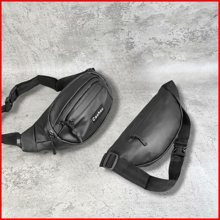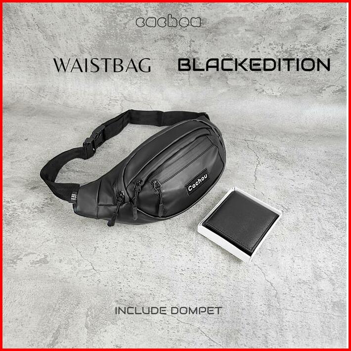 Waistbag Pria Black Edition Cachou Waterproof Tas Selempang Cowok Pinggang Kulit Slingbag