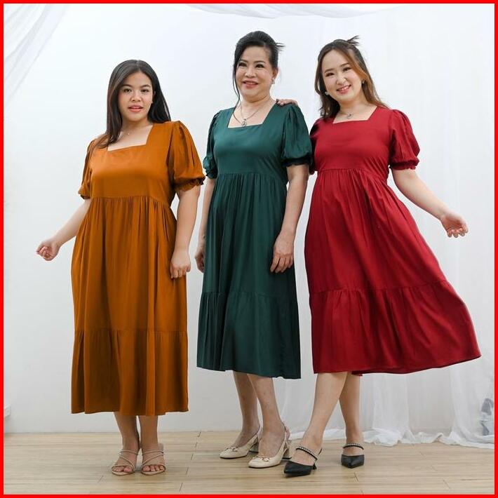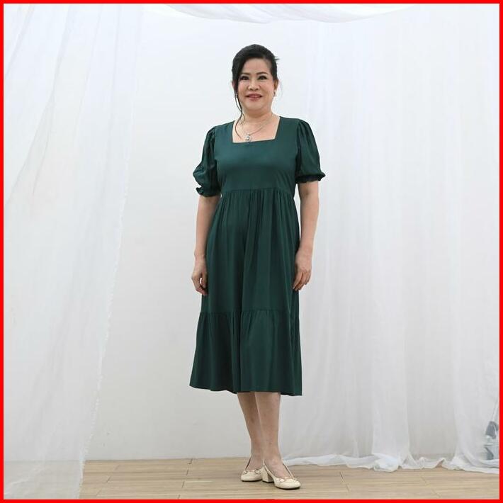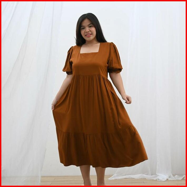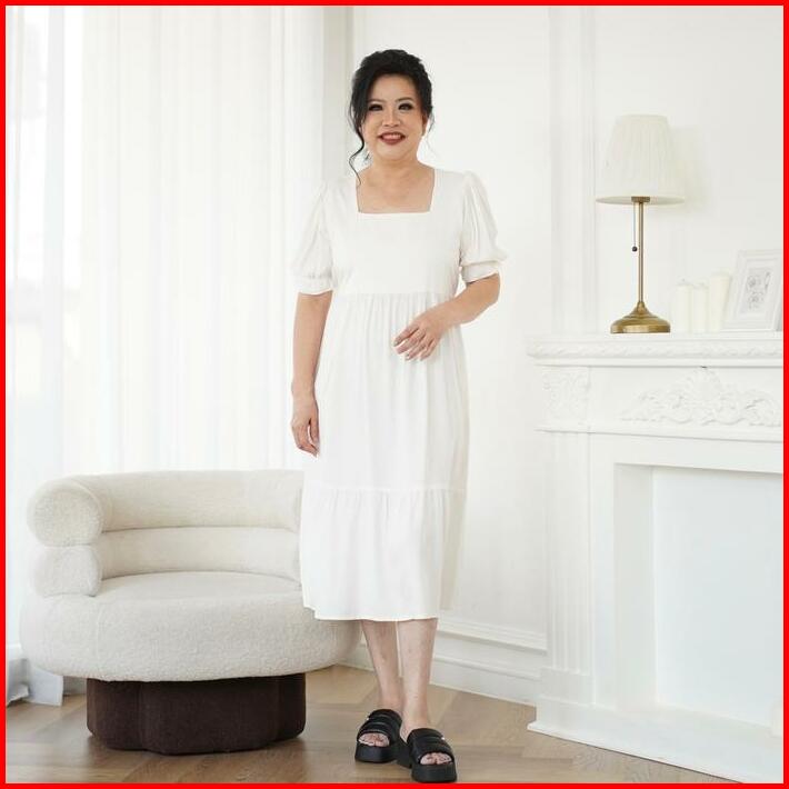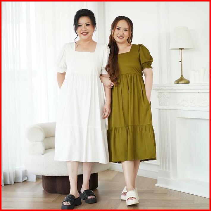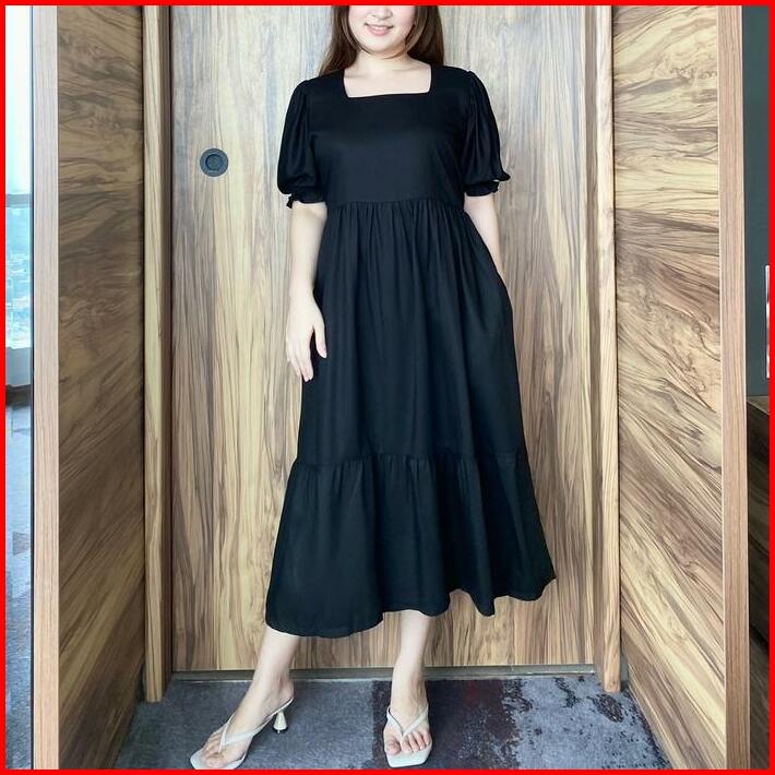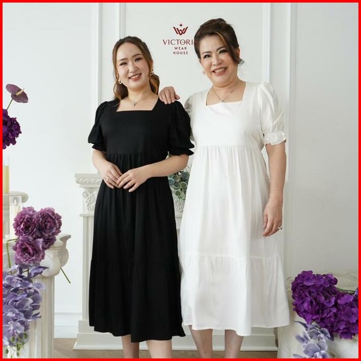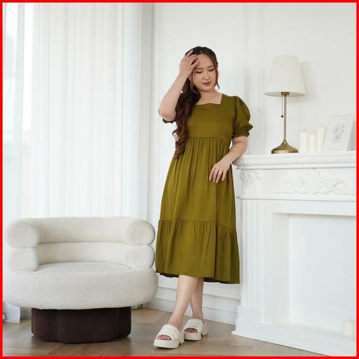 Victoria Wear House Lisa Dress Midi Square Neck Lengan Balon Puffy Bahan Katun Rayon Twill Dres Terusan Gaun Casual Wani