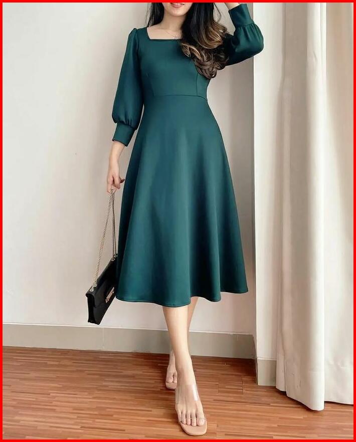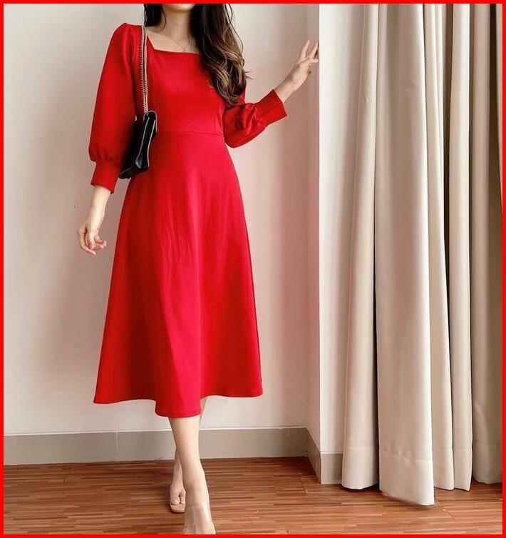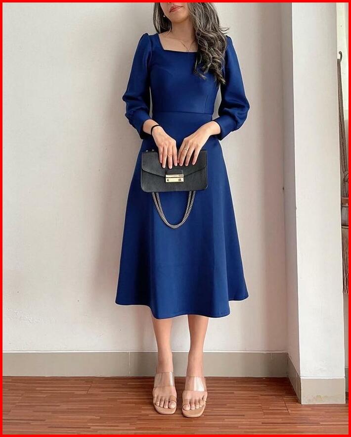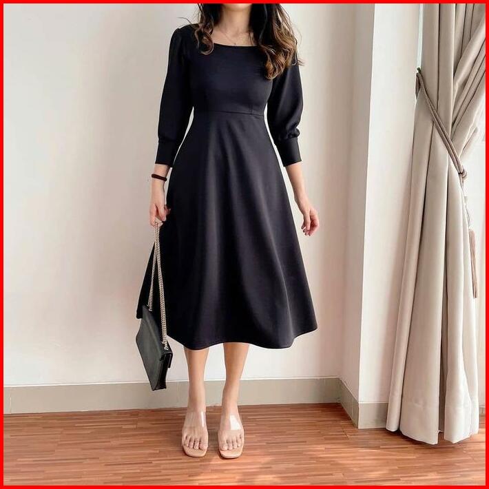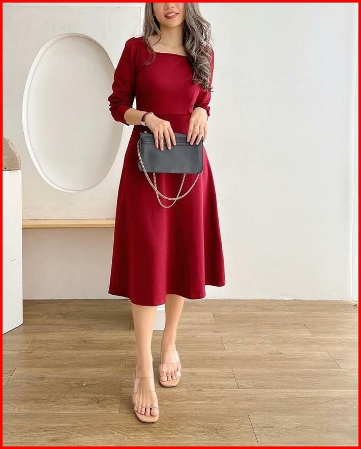 Aurora Dress Casual Dewasa Scuba Pakaian Wanita Gaun Wanita Midi Dress S M L Xl