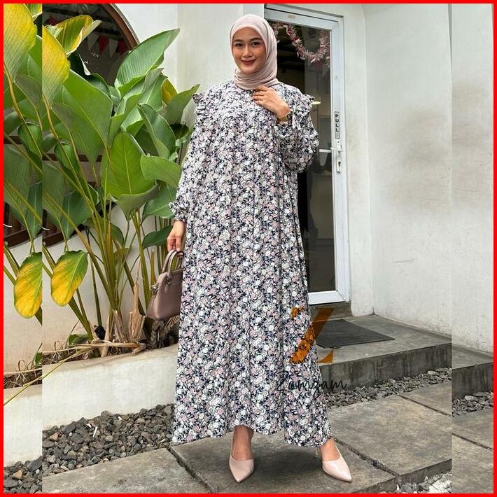 Dress Jihan Rayon Viscose Premium Motif Terbaru Gamis Muslim Wanita Mewah Kondangan Midi Tebal