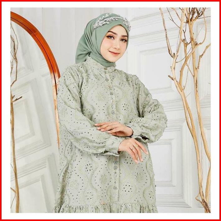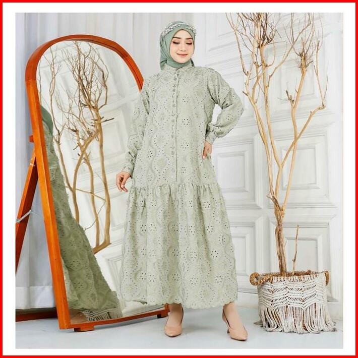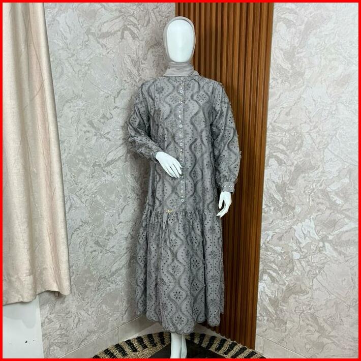 Khemari Midi Dress Katun Bolong Payet Premium Elegant Mewah Cantik