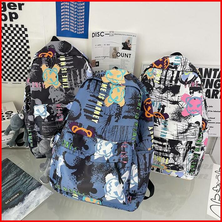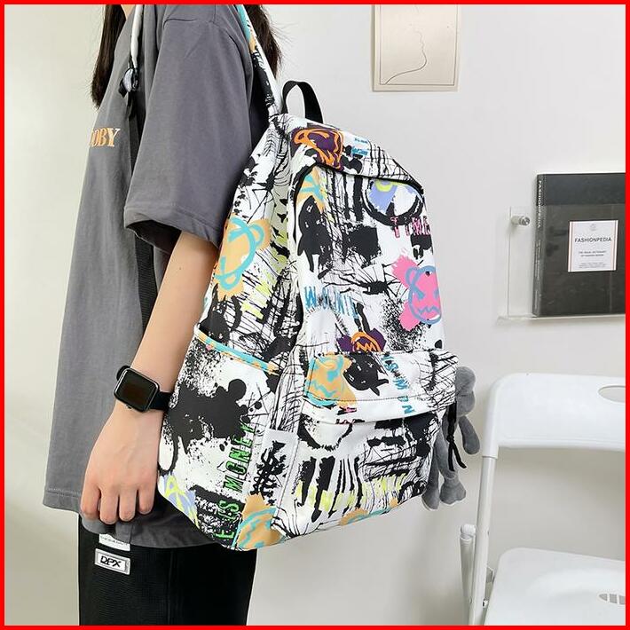 Freeknight Tas Ransel Laptop Kasual Tas Ransel Sekolah Pria Wanita Tas Punggung Laptop Backpack Trendy Hitam White Tr508