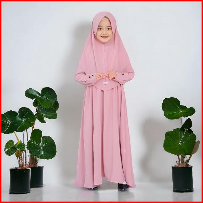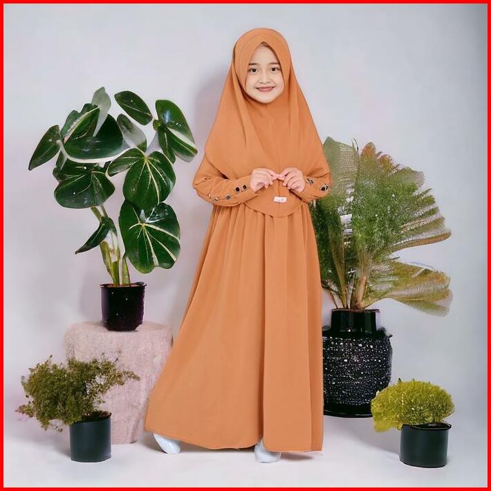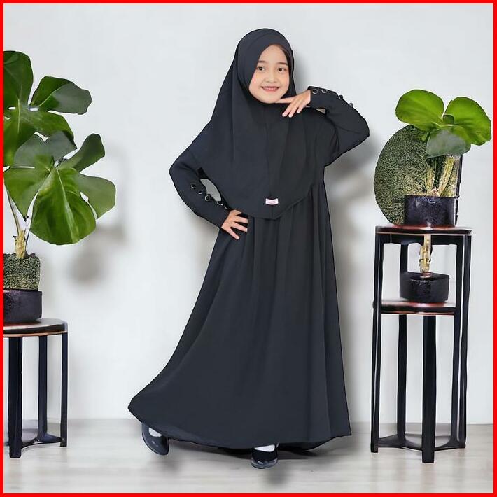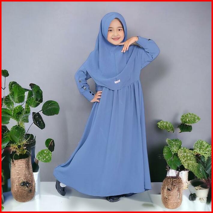 Gamis Anak Set Hijab Bergo Terbaru 2025 Usia 5-13 Tahun Crinkle Airflow Baju Muslim Setelan Anak Tanggung Dress Panjang
