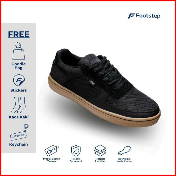 Footstep Footwear Sepatu Sneakers Casual Pria Nexon Black Gum Original Shoes Snekers Kerja