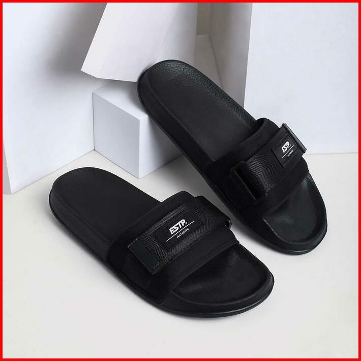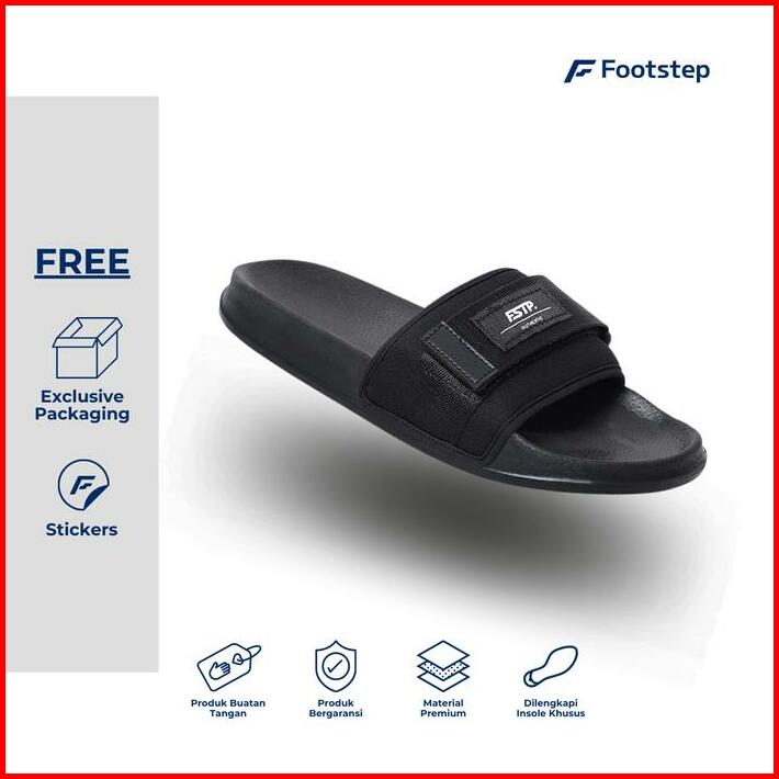 Sendal Cowok Footstep Volta Black Slide Sandal Shoes Pria Selop