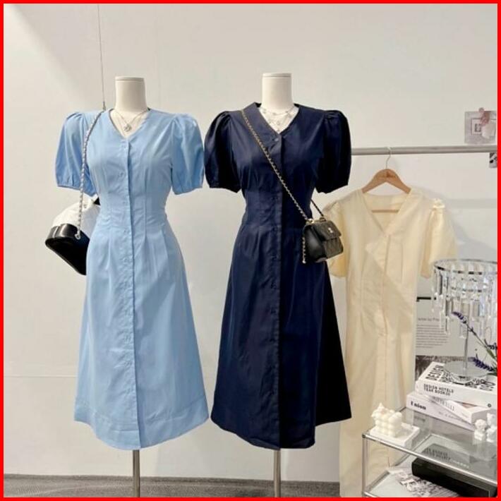Amanda Korean Dress V-neck Midi Dress Korea Dress Korset Dress Tali Dress Casual V-neck V-neck V-neck V-neck V-neck V-ne