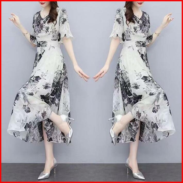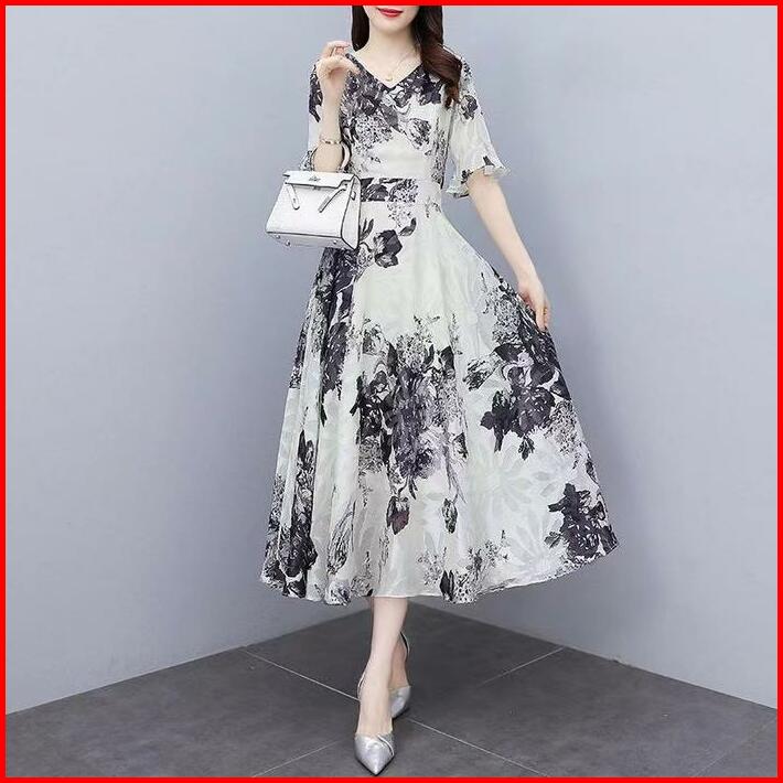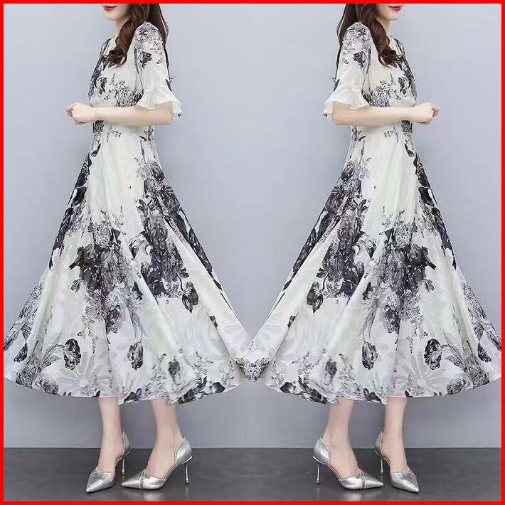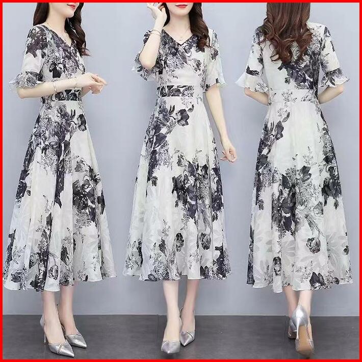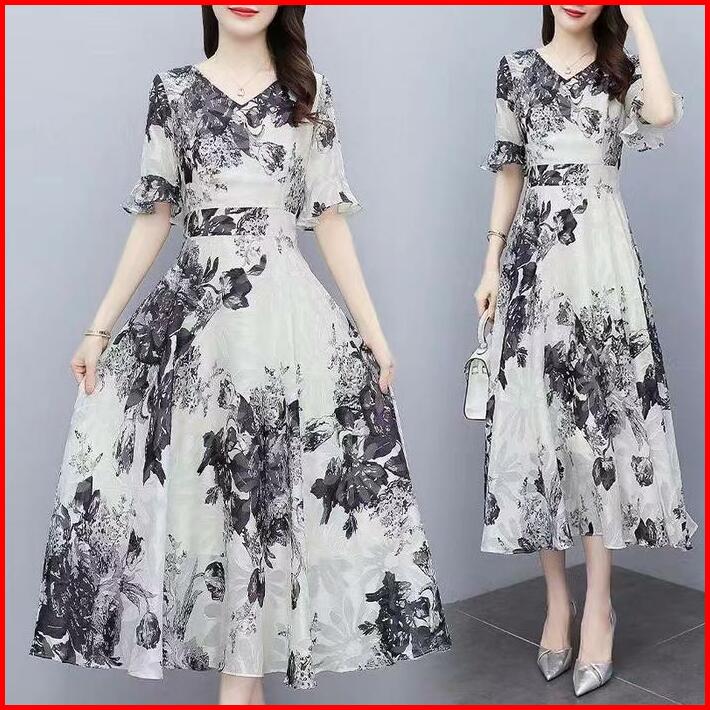 Fanmu Midi Dress Rayon Premium Midi Dress Motif Bunga Kecil Korea Midi Dress Rayon Premium Casual Gaun Panjang Sifon Wan