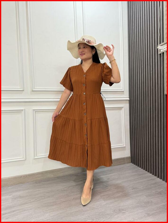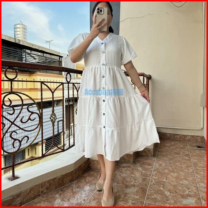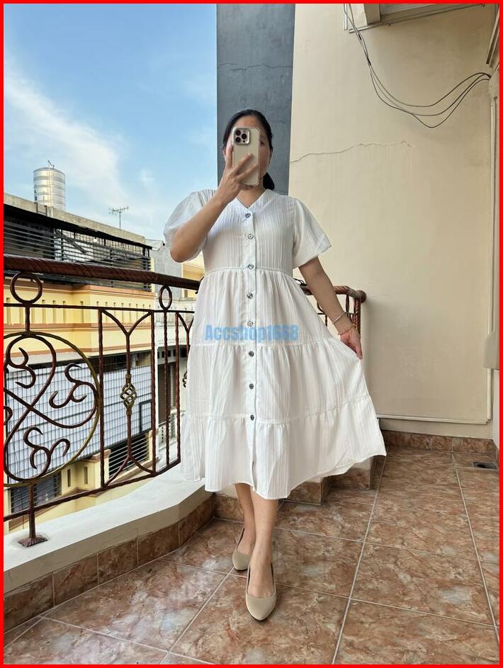 Elisa Dress Midi Lady Sofia Acc3008 Casual Kancing Wanita Bumil Serut Ruffle Simple
