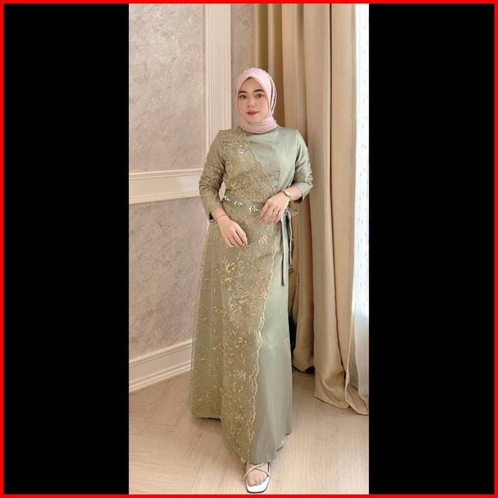 Kinan Gaun Lebaran 2025 Gamis Brukat Dress Pesta Wanita Kondangan Muslim Remaja Bridesmaid Gaun Seragaman Dewasa Mewah M