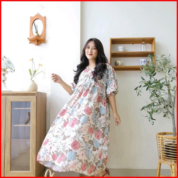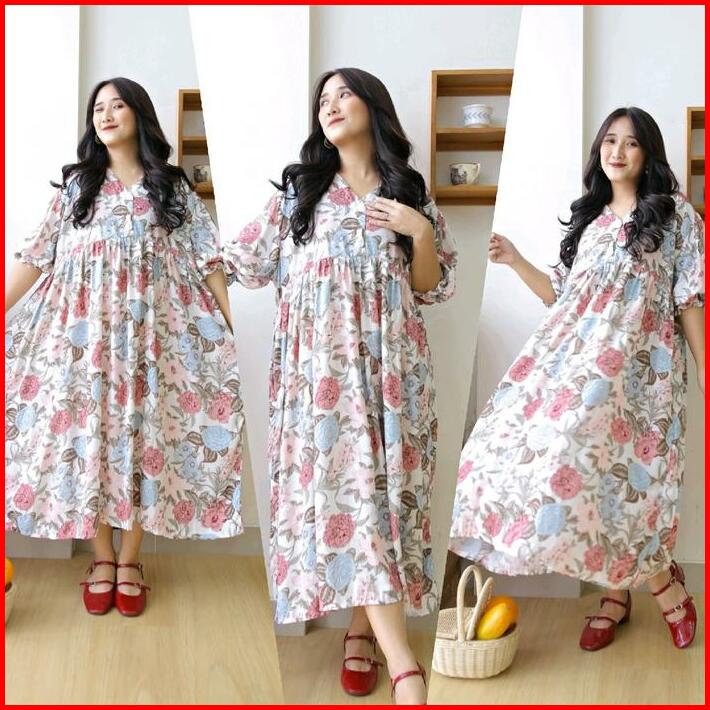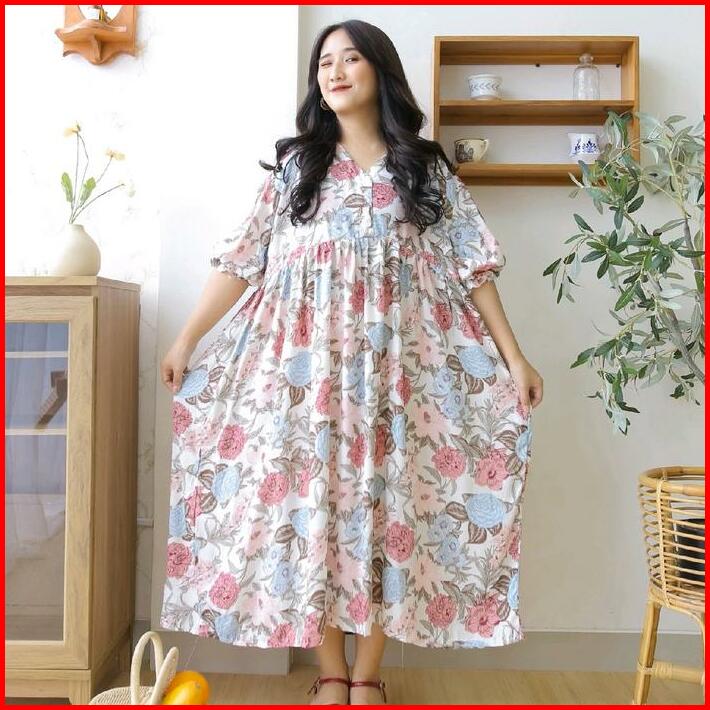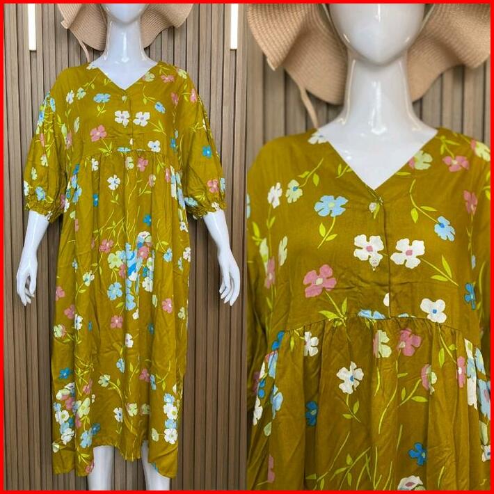 Dress Amina Big Size Daster Wanita Kancing Casual Kekinian Katun Rayon Midi Panjang Pendek