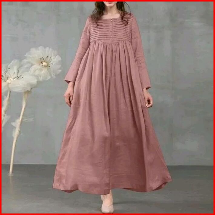 Ruby Maxi Dress Bahan Linen Premium Baju Gamis Dress Wanita Muslim Modern Fashion Lengan Panjang Dress Pesta Terbaru Max