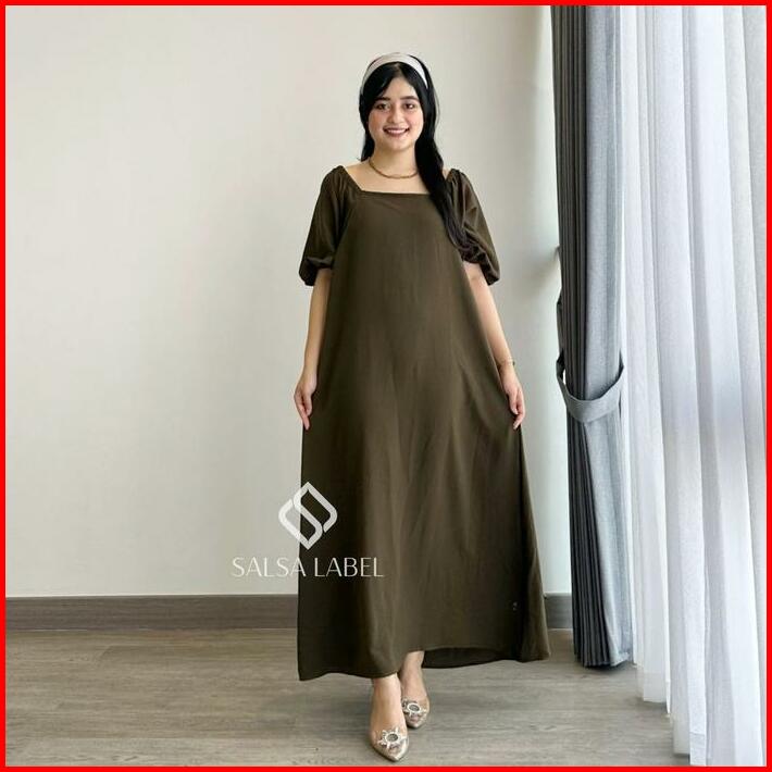 Milea Long Dress Airflow Crinkle Lengan Balon Karet Casual Midi Wanita Baju Daster Simple