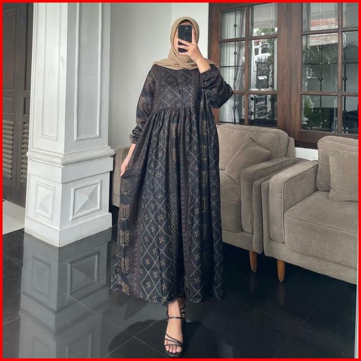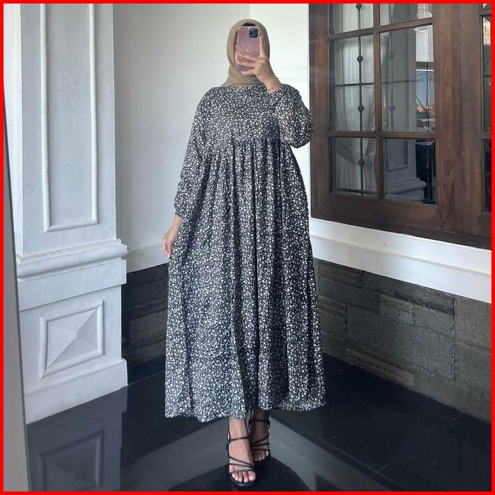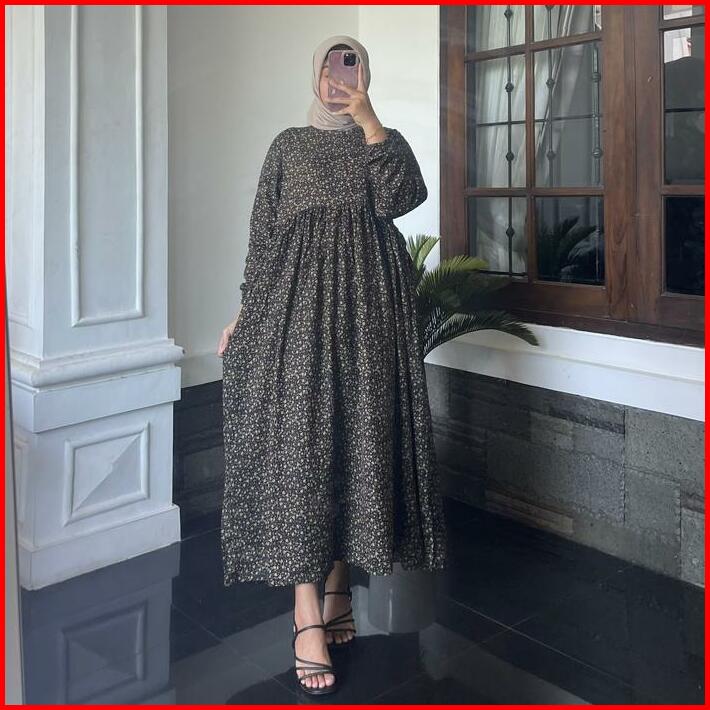 Midi Dress Rayon Motif Bunga Premium Dres Premium Jumbo Busui Friendly Muslim Wanita Gamis