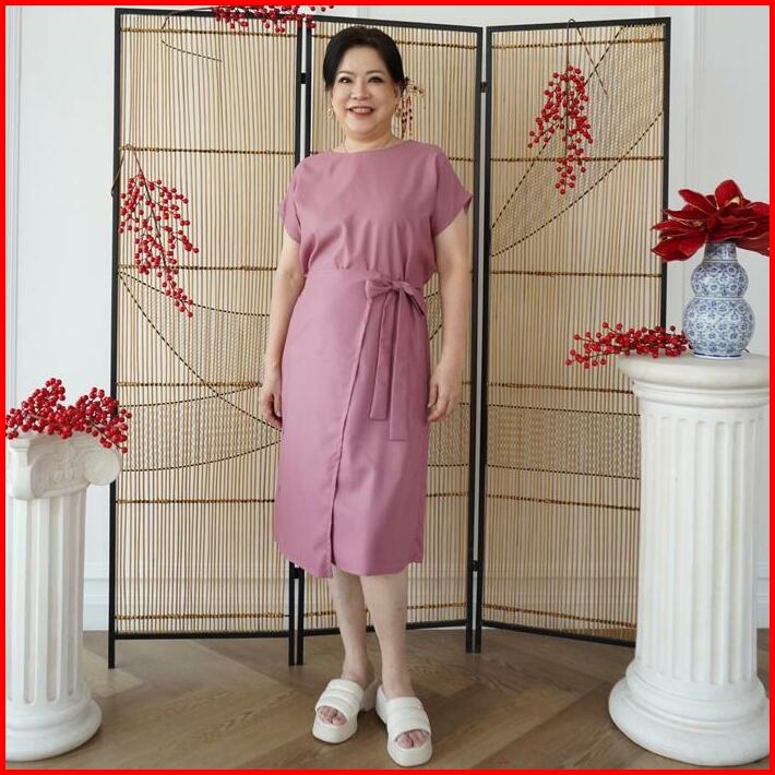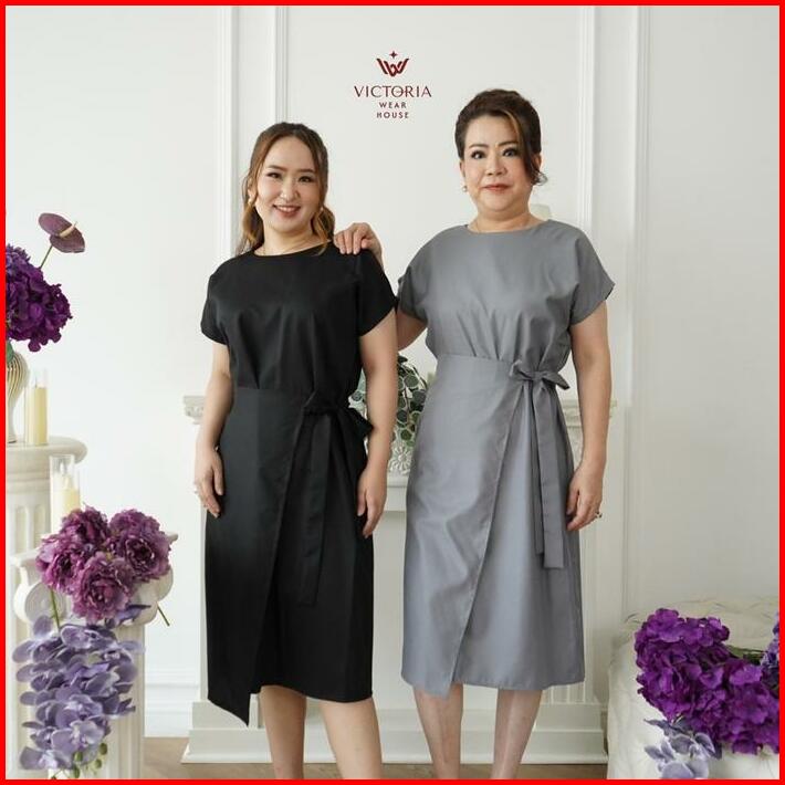 Victoria Wear House Kang Dress Midi Ikat Lengan Pendek Bahan Katun Toyobo Dres Gaun Terusan Wanita