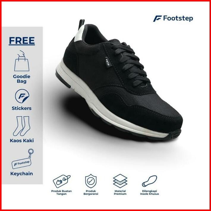 Footstep Footwear Sepatu Pria Sneakers Afton Full Black Original Shoes Casual Snekers Hitam Kerja