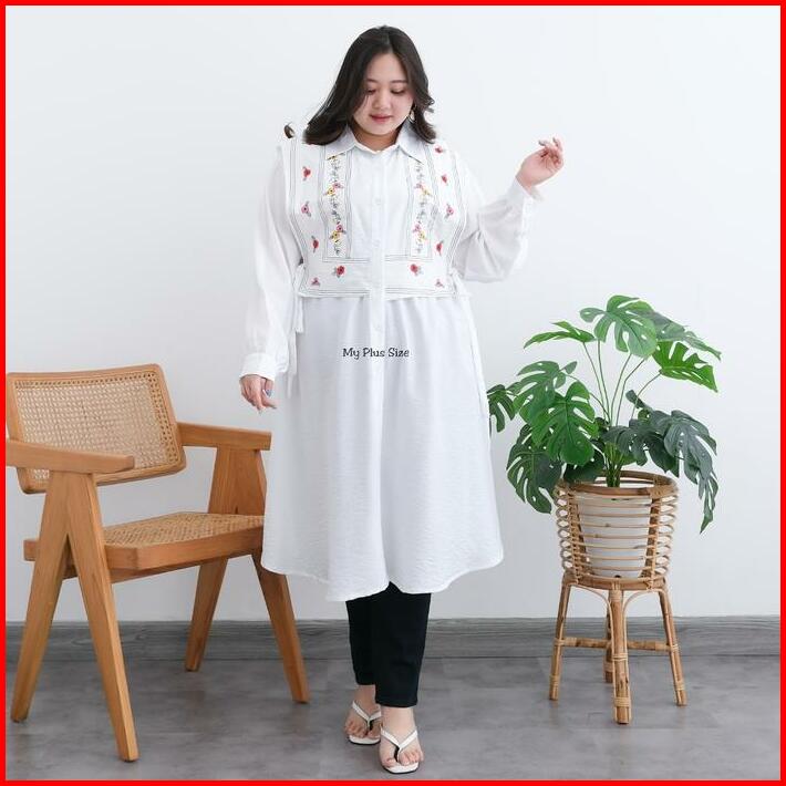 Long Tunik Jumbo Wanita Mix Vest Bordir 3854 Ld 125 135 145 Cm Midi Dress Jumbo
