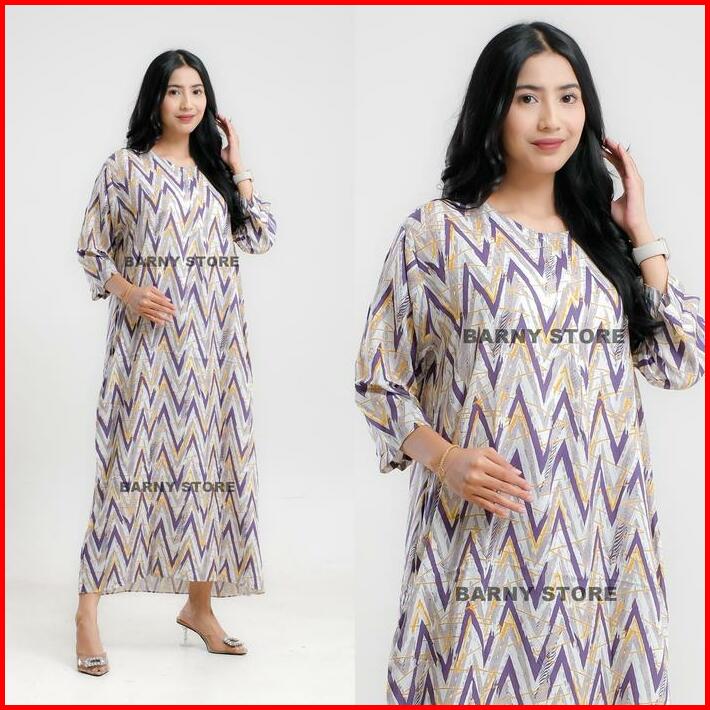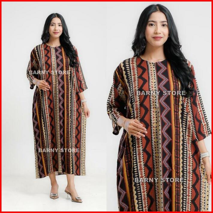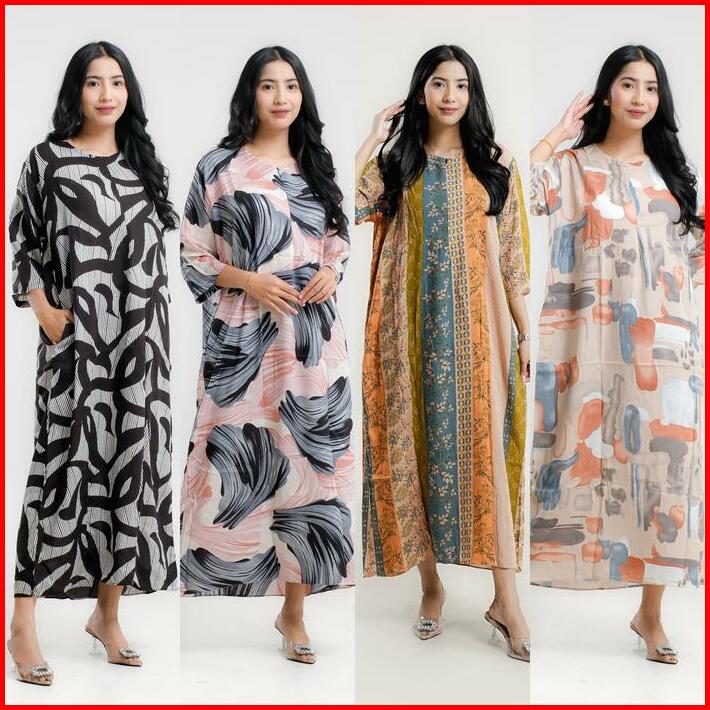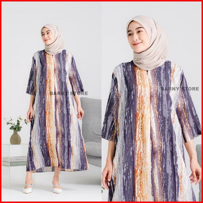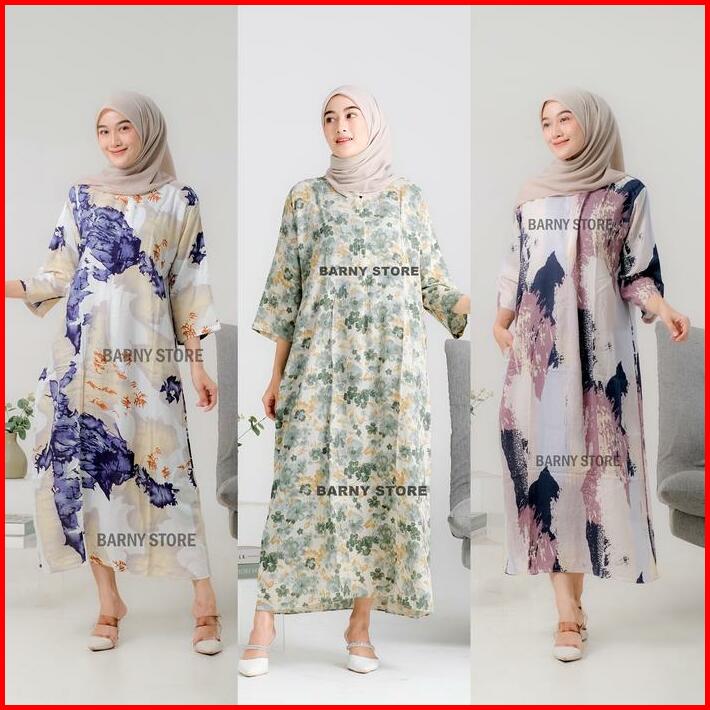Daster Viral Kekinian Gamis Midi Dress Lengan 3 4 Rayon Motif Premium